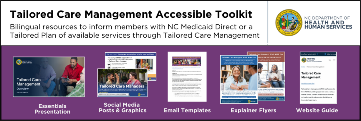 Please share these bilingual and accessible resources to help communities get the answers they need. The Tailored Care Management toolkit is available in English and Spanish. It includes: - NEW! PowerPoint with essential details about Tailored Care Management (download here)